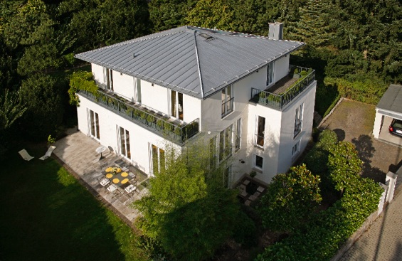 Das Einfamilienanwesen nutzt sowohl die bebaubare Grundstücksfläche als auch die baurechtlich zulässige Geschossfläche optimal aus.